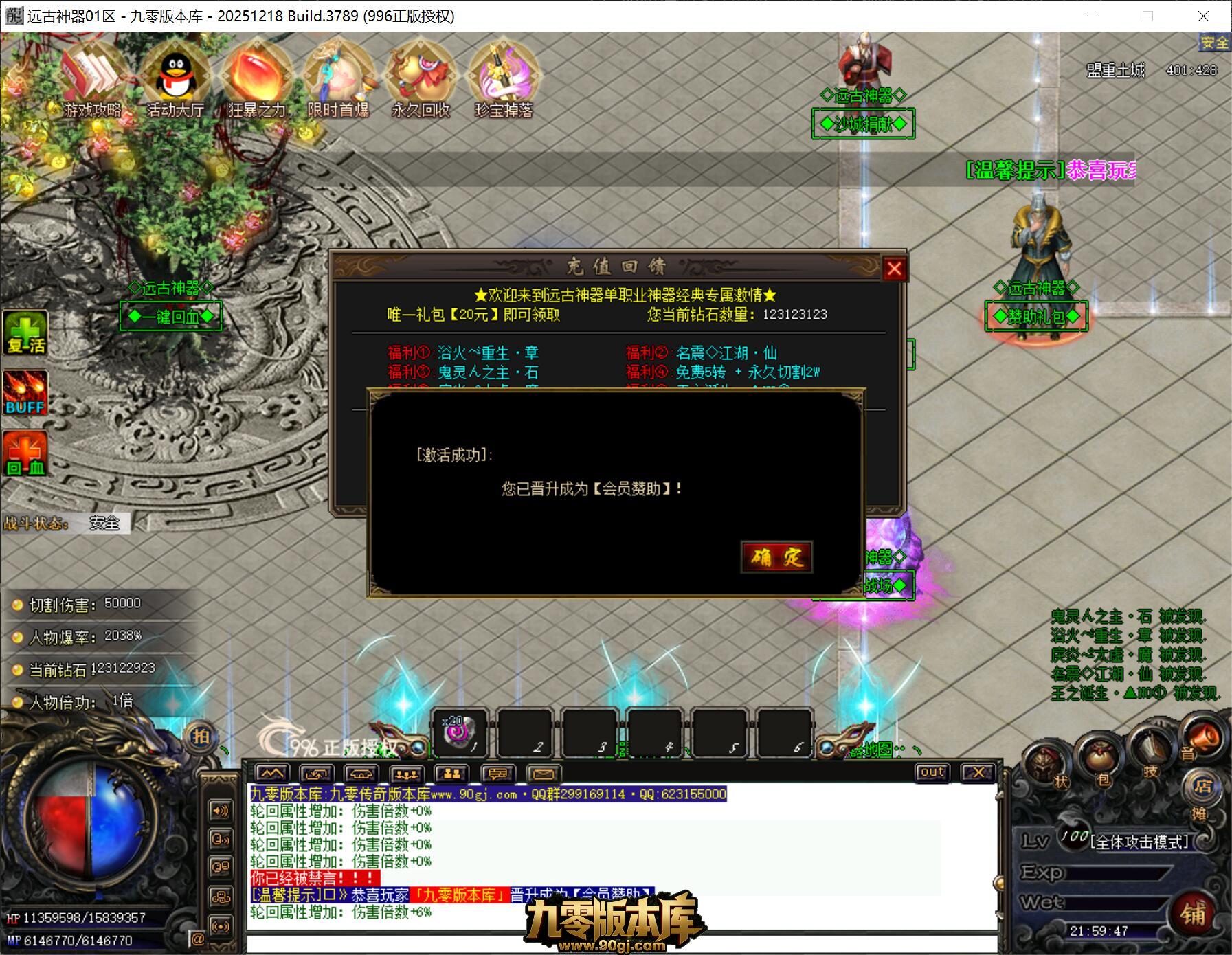 3.★充值完成.依次领取背包神器.刀刀货币(砍怪即可获得所有货币.击杀怪物获得爆率加成.背包神器显示)